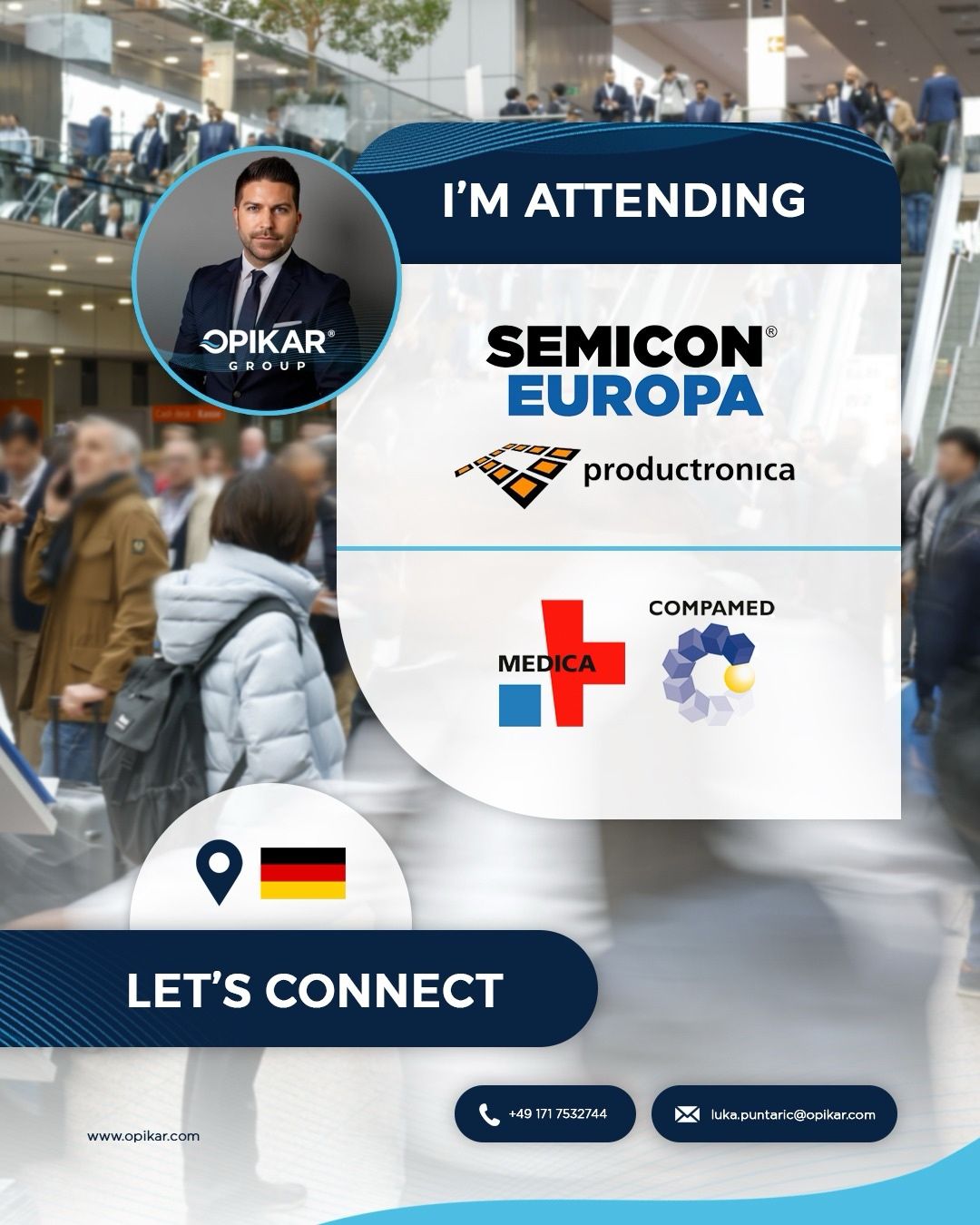 🇩🇪 I’ll be attending MEDICA – Leading International Trade Fair & COMPAMED – DĂĽsseldorf / Deutschland (DĂĽsseldorf, Nov 17, 2025) and SEMI Europe & productronica (Munich, Nov 19–20, 2025).